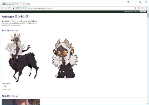 Tumlbrで人気のあるポストランキングを表示する「Reblogen ランキング」を公開しました。直近24時間のポストの中でリブログやライクの件数が多いポストを集めてランキングを生成しています。画像のみ対応。Tumblr全体を元にランキングを作れればいいのですが…
